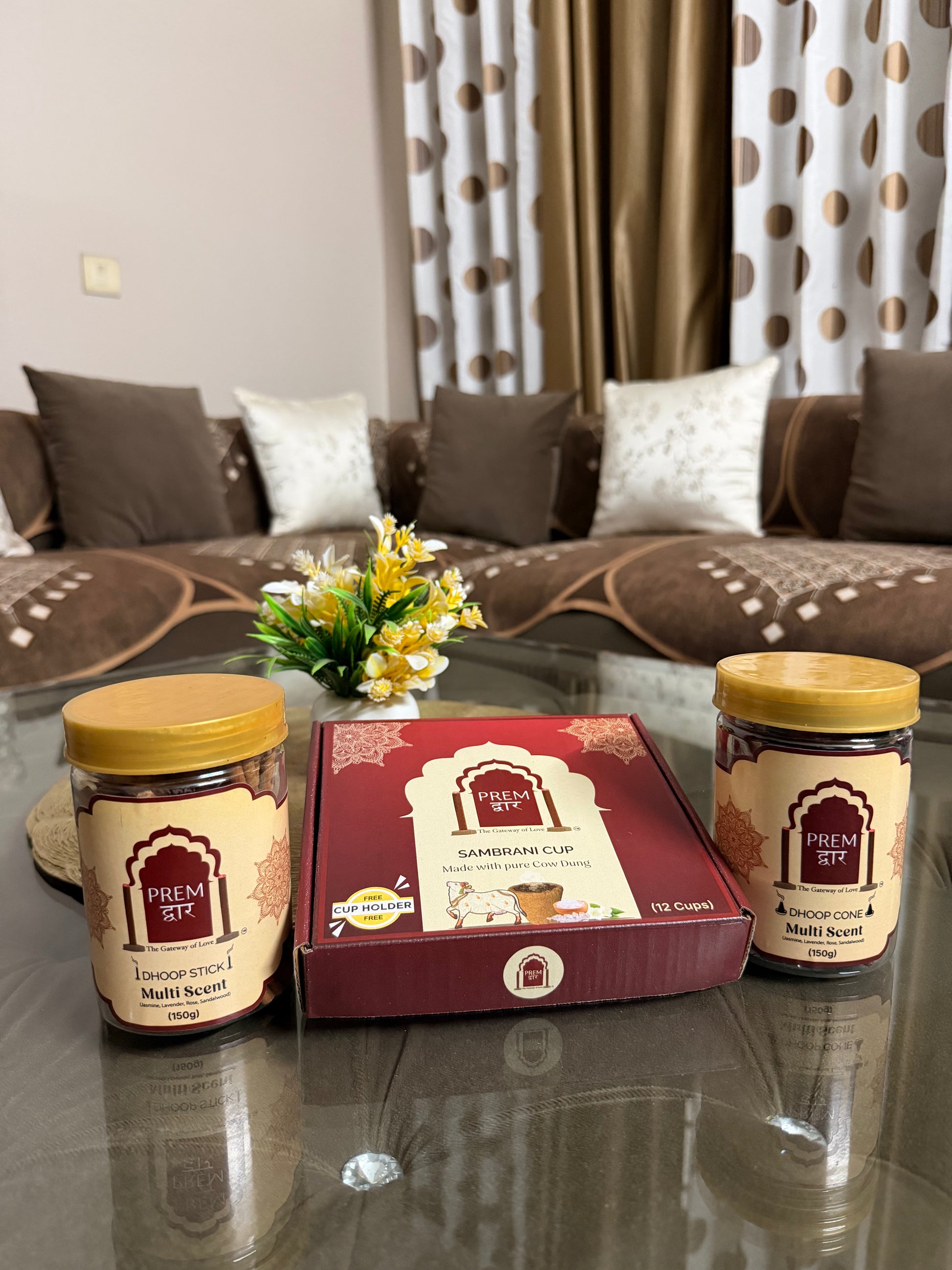 - A 150g Jar of Multi-Scent Dhoop Sticks with all 4 Scents(Jasmine, Lavender, Rose, Sandalwood)